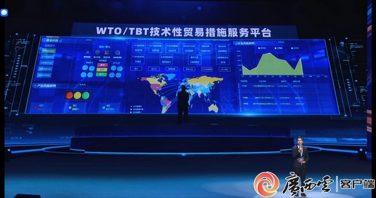 “A超之夜”舞臺上,機器人與人共舞。資料圖片 以賽促用,推動AI與監(jiān)管深度融合 今年,自治區(qū)市場監(jiān)管局聯(lián)合共青團廣西區(qū)委、南寧市人民政府、自治區(qū)藥品監(jiān)管局,以“智慧市場 慧聯(lián)東盟”為主題,成功舉辦市場監(jiān)管服務(wù)創(chuàng)新應(yīng)用大賽。大賽聚焦中國—東盟市場服務(wù)創(chuàng)新、經(jīng)營主體高質(zhì)量發(fā)展、監(jiān)管揭榜掛帥三大賽道,設(shè)立41個具體應(yīng)用場景,吸引了來自全國及東盟十國的1303支隊伍踴躍參與,其中東盟團隊達105支,覆蓋企業(yè)、高校、科研院所等多類創(chuàng)新主體。 大賽堅持“以賽促創(chuàng)、以賽促用、以賽促合”,不僅挖掘出一批具有前瞻性與實用性的“AI+監(jiān)管”解決方案,更直接推動項目在食品安全、特種設(shè)備監(jiān)管、跨境貿(mào)易便利化等領(lǐng)域落地見效,初步構(gòu)建了“技術(shù)突破—場景驗證—產(chǎn)業(yè)應(yīng)用—體系升級”的良性發(fā)展閉環(huán)。 閃耀時刻:四大環(huán)節(jié)彰顯硬核實力 在“A超之夜”活動中,市場監(jiān)管賽道成果通過超級路演、榮耀時刻、戰(zhàn)略發(fā)布、成果巡展四大環(huán)節(jié)全方位呈現(xiàn),成為20個子賽道中入選項目最多、覆蓋展示最全的賽道之一,彰顯了AI賦能市場監(jiān)管的強勁動能。 超級路演環(huán)節(jié),廣西標(biāo)準(zhǔn)技術(shù)研究院的“AI標(biāo)準(zhǔn):WTO/TBT技術(shù)性貿(mào)易措施服務(wù)平臺”作為8個路演項目之一精彩亮相。該項目依托AI智能翻譯、一鍵比對與合規(guī)報告自動生成等功能,為企業(yè)跨境貿(mào)易提供“標(biāo)準(zhǔn)導(dǎo)航”,累計已發(fā)出預(yù)警1300余次,有效規(guī)避中國—東盟貿(mào)易中的標(biāo)準(zhǔn)規(guī)則壁壘。