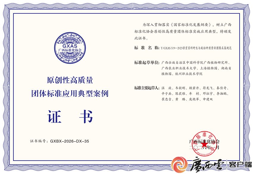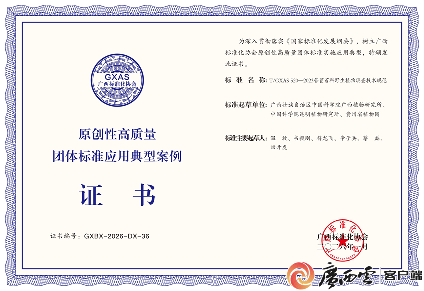 日前,廣西標準化協(xié)會公布了第一批(100項)原創(chuàng)性高質量團體標準實施應用典型案例名單,由廣西植物研究所牽頭制定的《苦苣苔科野生與栽培種質資源圖像采集規(guī)范》《苦苣苔科野生植物調查技術規(guī)范》兩項團體標準成功入選。這是我國首個針對苦苣苔科植物保護與研究的系統(tǒng)性技術標準,標志著廣西在其專科專屬野生與栽培植物數(shù)據(jù)采集和調查標準化領域取得突破性進展。