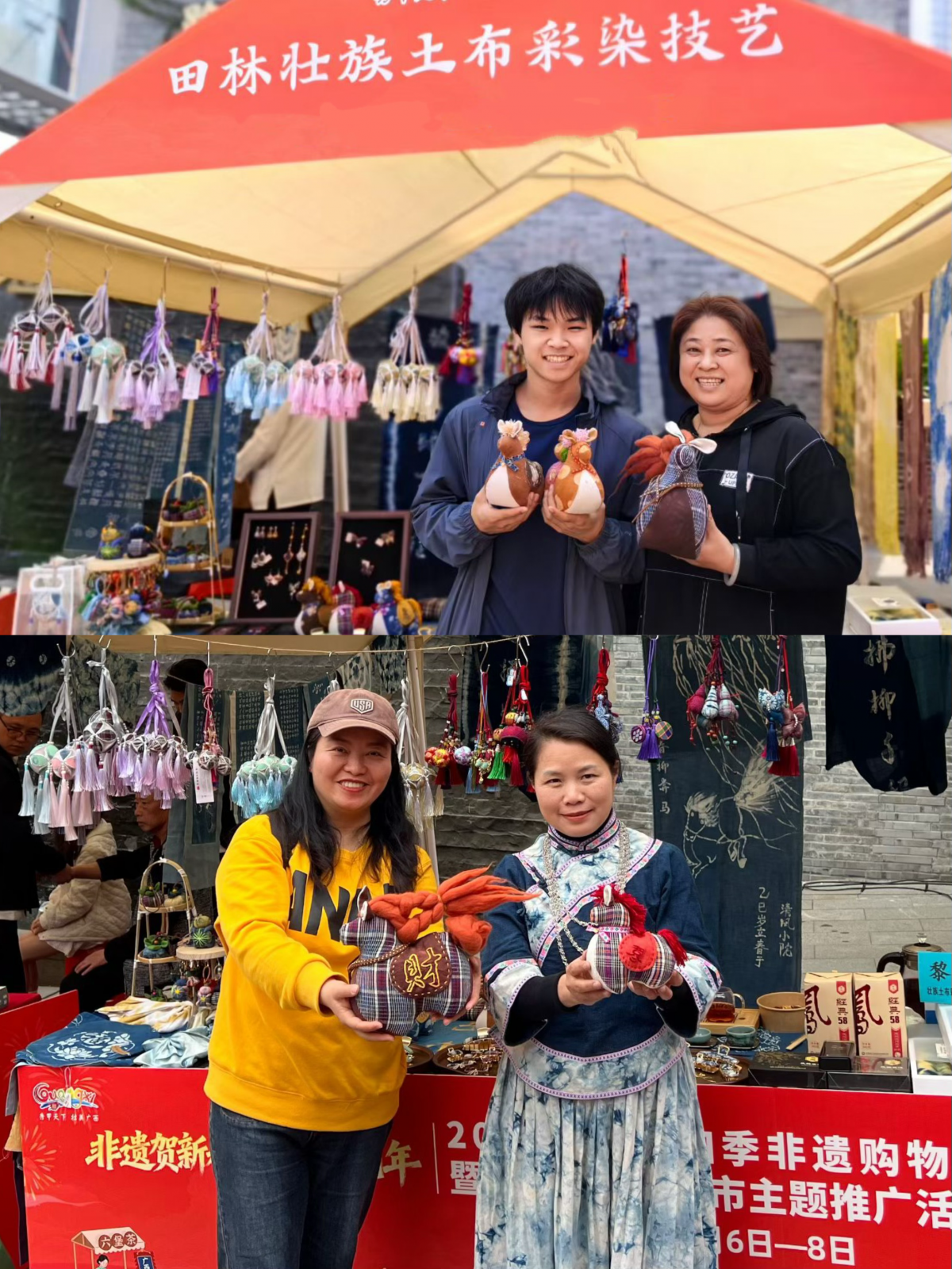在2月份的“非遺賀新春 尋味中國年”非遺年貨大集市上,很多游客忍不住和土布彩染福馬合影。受訪者供圖 2月初,壯族土布彩染技藝又作為廣西二十八個代表性非遺技藝之一,參與了新中山路上舉辦的“非遺賀新春 尋味中國年”非遺年貨大集市。現(xiàn)場人潮涌動,黎清嫻的展位也被很多游客圍觀拍照,大家一邊挑選購買,一邊好奇問各種關(guān)于彩染的問題。除了土布福馬布偶,小巧玲瓏的彩染布繡球、土布麼乜包掛也頗受年輕人的喜愛,大家立即掛在自己的挎包上。 和記者交流中,黎清嫻欣慰地說,自己作為非遺代表性傳承人已10年有余,最大的感覺就是一年比一年忙碌,越來越多社會各界邀請她去分享、展示土布彩染技藝,或者現(xiàn)場教學(xué)互動!斑^去,我更多是作為創(chuàng)作者出現(xiàn),默默耕耘,F(xiàn)在的我更像一個播種者,最大的夢想是讓廣西本土非遺被更多人看到,在他們心中播下一顆種子,吸引越來越多人支持甚至參與到非遺傳承的隊伍中來,這份事業(yè)讓我更有使命感! 本文由南國早報原創(chuàng)出品,未經(jīng)許可,任何渠道、平臺請勿轉(zhuǎn)載。違者必究。 |
