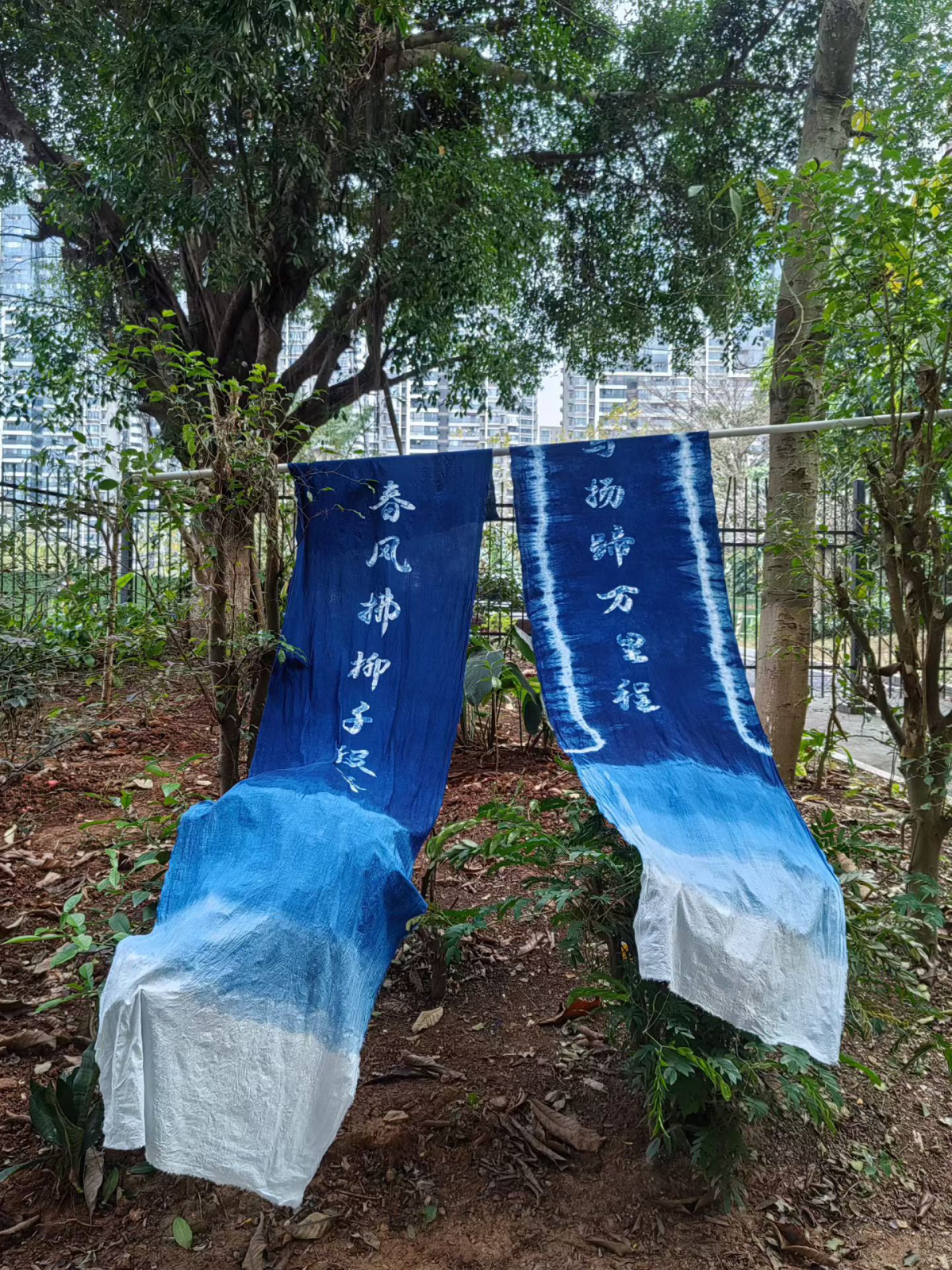 黎清嫻花了兩天時間創(chuàng)作的春柳奔馬蠟染圖。受訪者供圖 黎清嫻還創(chuàng)作了一副長約2米的春柳奔馬蠟染圖,耗時兩日。第一天刻畫字樣,第二天進行蠟染,“春風拂柳千般秀,駿馬揚蹄萬里程”,寓意美好。當她在各種新春非遺活動現(xiàn)場,高高掛起這幅春柳奔馬蠟染圖,就格外引人矚目,被大家圍觀。
