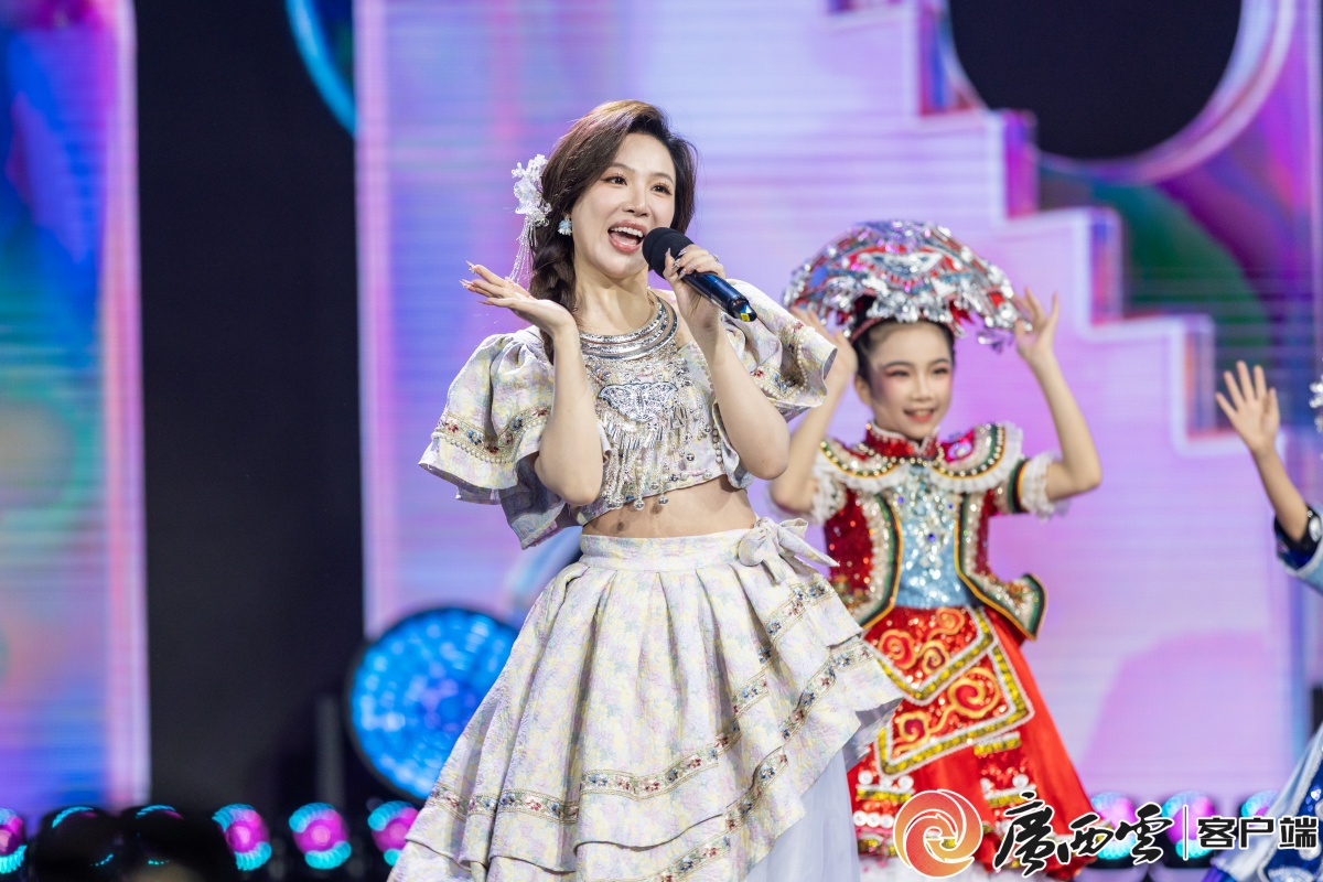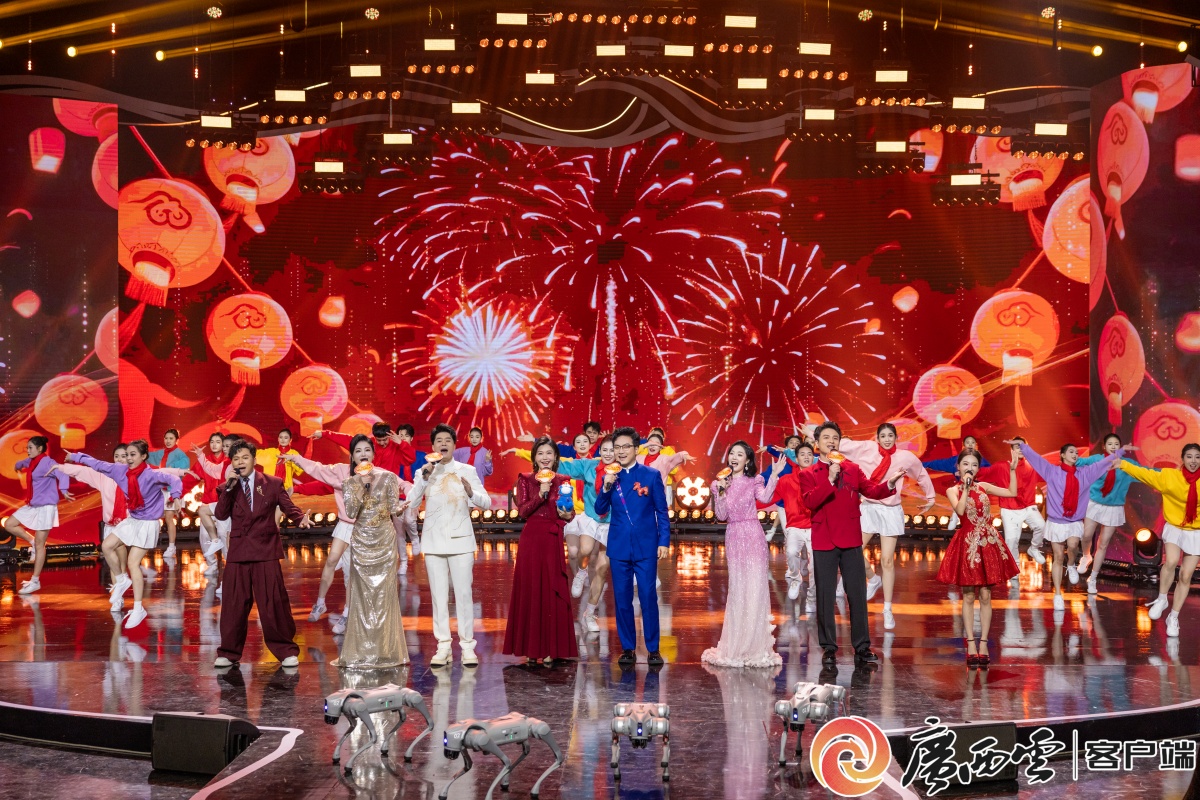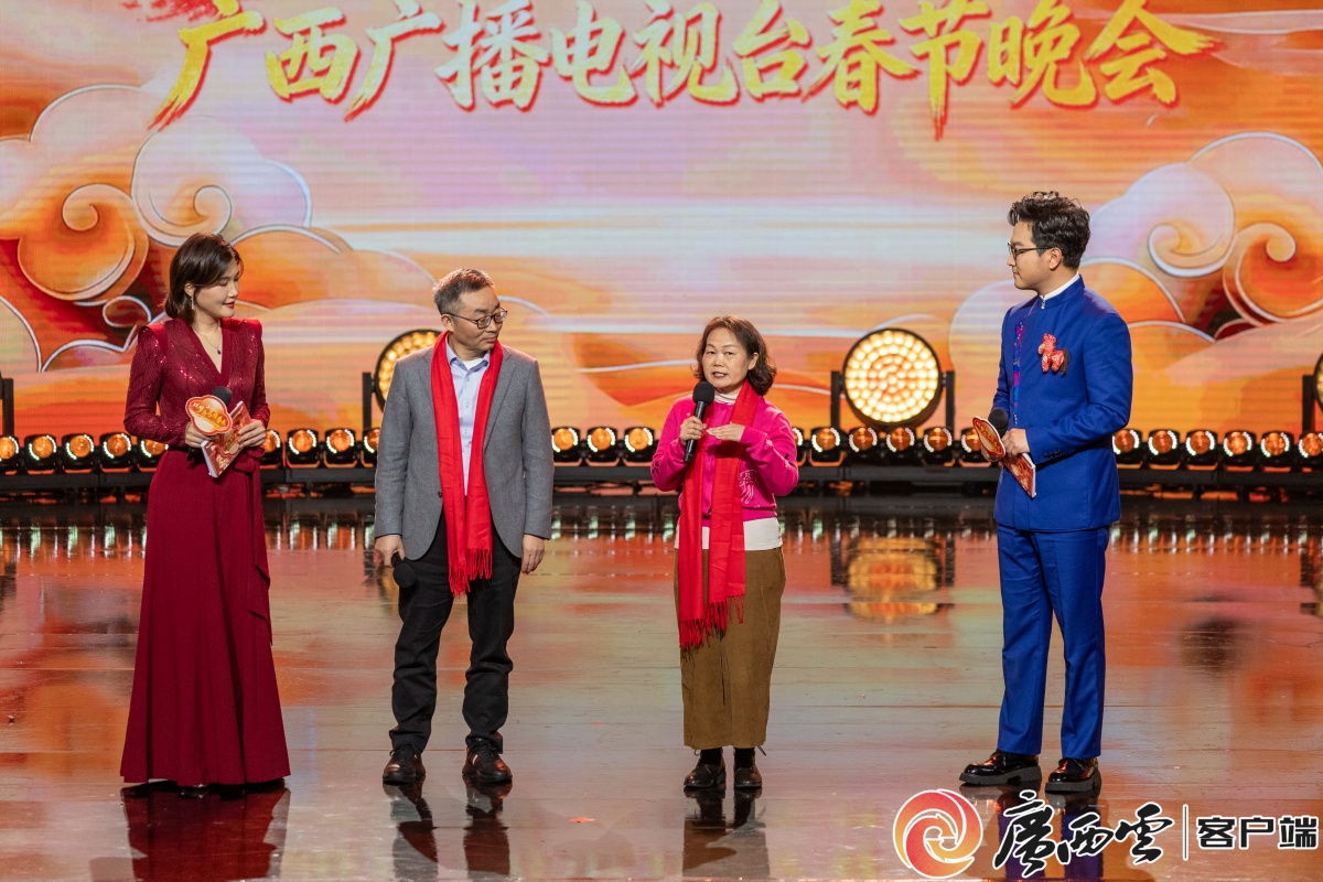 晚會現(xiàn)場。 晚會還禮贊奮斗精神,凝聚時代力量。茅盾文學獎得主東西、兒童文學作家王勇英等 “文學桂軍” 代表分享故鄉(xiāng)情懷;情景歌舞《溫暖回家路》致敬堅守一線的各行各業(yè)勞動者;廣西大學天體物理科研團隊登臺講述探索宇宙的征程,展現(xiàn)八桂兒女腳踏實地、仰望星空的精神風貌。