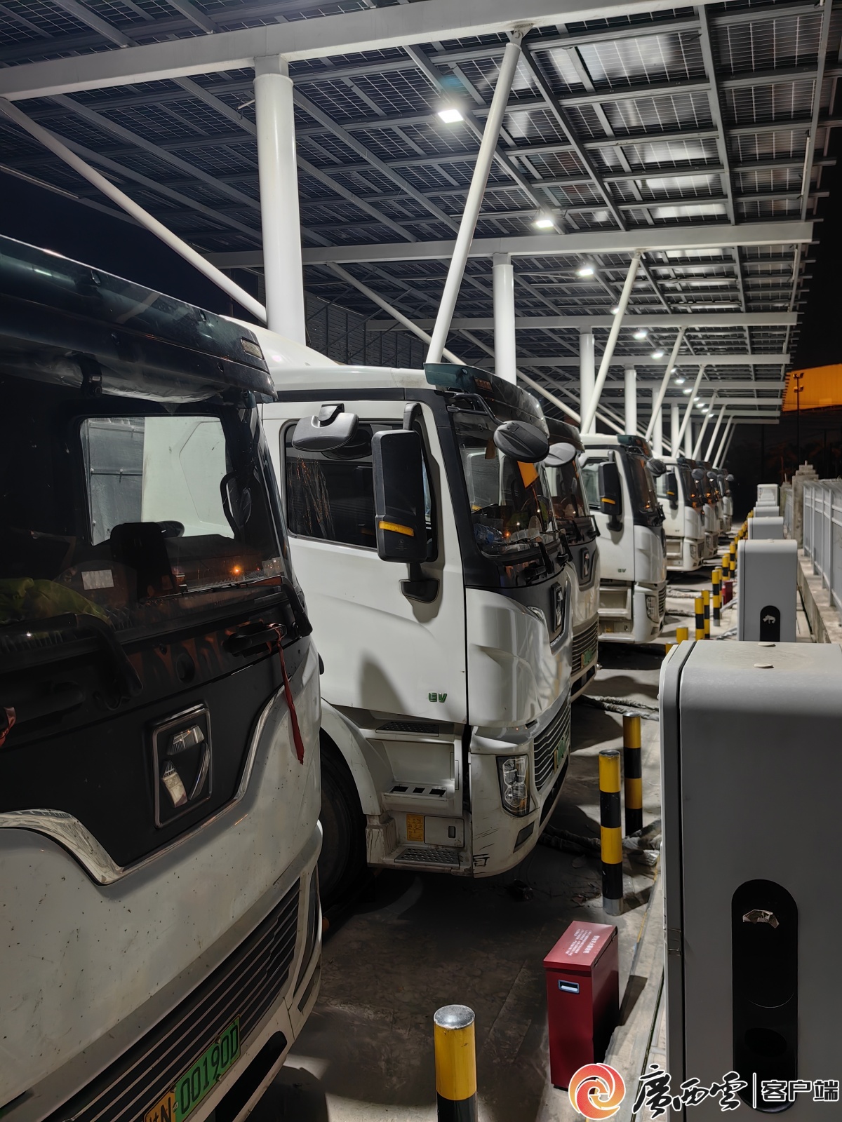 廣西電動公司工作人員在欽州祥龍物流園重卡充電站進行巡檢。梁敏 攝 2月以來,欽州祥龍物流園比以往更加繁忙。集裝箱卡車一輛接一輛駛?cè),龍門吊的轟鳴聲此起彼伏。業(yè)務(wù)經(jīng)理方瑜仁站在堆場前,指著遠處正在充電的一排重卡說:“以前這片全是柴油味,現(xiàn)在空氣都清新很多了! 欽州港是內(nèi)外貿(mào)中轉(zhuǎn)的重要樞紐,祥龍物流園是“欽州—北!莱歉邸备劭谛蛧椅锪鳂屑~重點項目之一。來自廣西、云南、四川的貨物運抵這里后,重新裝箱,再從欽州港發(fā)往東盟各國。方瑜仁算過一筆賬:同樣一趟短駁,電費比油費省近一半,保養(yǎng)成本更低,司機愿意開,園區(qū)也愿意接。 “噪音小,沒油污,地面干凈了,管理也輕松!狈借と收f。 2025年,廣西沿海港口交出一份亮眼的成績單:欽州港全年貨物吞吐量2.26億噸,同比增長8.7%;集裝箱746.2萬標箱,同比增長7.2%。貨物源源不斷涌入,碼頭與物流園之間的短駁需求水漲船高。 電動重卡的數(shù)量正在快速攀升。 南方電網(wǎng)廣西電動汽車公司的規(guī)劃圖上,北部灣沿岸的充電站標記正變得越來越密。在欽州港附近的祥龍物流園和果子山兩座重卡超充站已經(jīng)建成,在北海東港、防城港港口區(qū)等區(qū)域的多座重卡站已在儲備中。根據(jù)最新部署,“兩廊一灣”重卡超充網(wǎng)絡(luò)正在成形——賀州—梧州、來賓—貴港重卡超充走廊,北部灣重卡超充圈。 更大的棋局在水面之下。 隨著平陸運河建成通航,廣西內(nèi)陸及西南、西北地區(qū)將擁有一條運距最短、最便捷的出海通道。屆時,來自成渝、云南、貴州的各類貨物,將從運河直下北部灣,轉(zhuǎn)海運發(fā)往全球。
