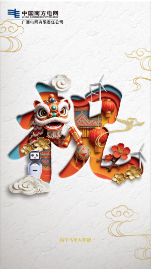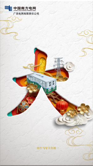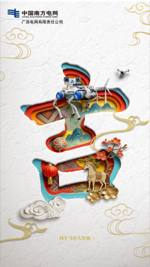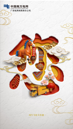 八桂銀線馳駿驥,馬到福來萬象新!南方電網(wǎng)廣西電網(wǎng)公司祝您闔家幸福、萬事如意、新春快樂、馬年大吉!
