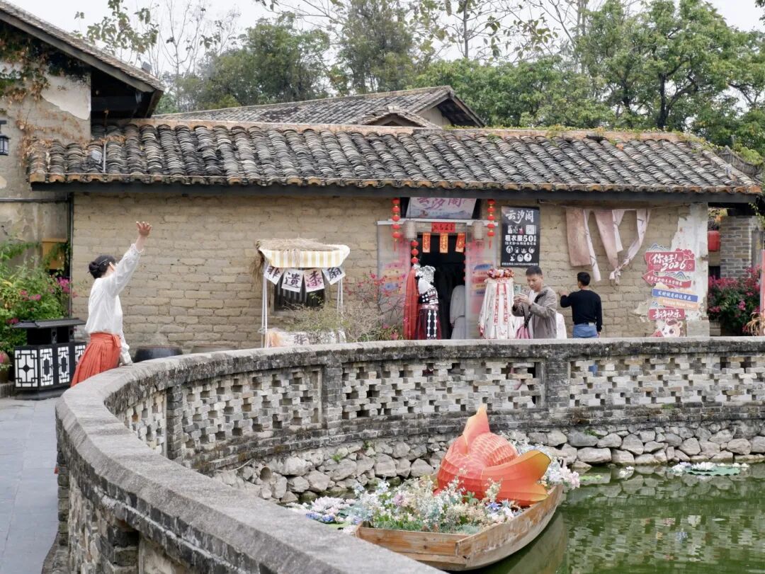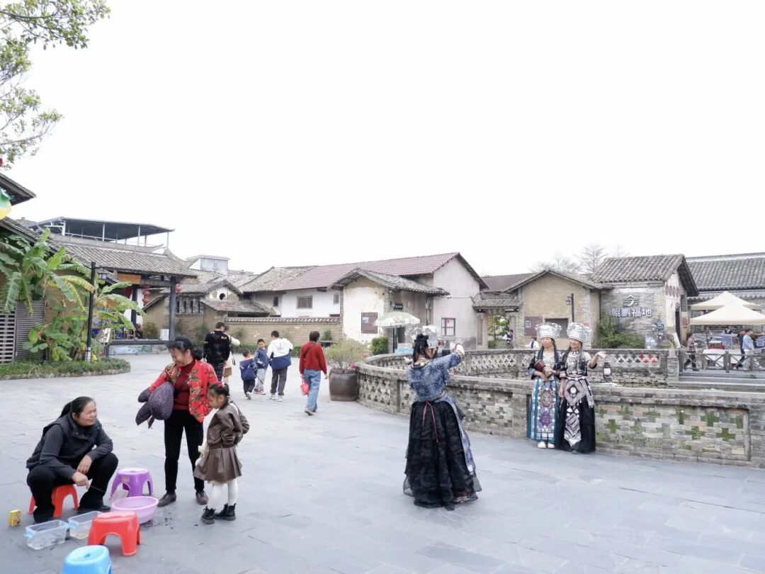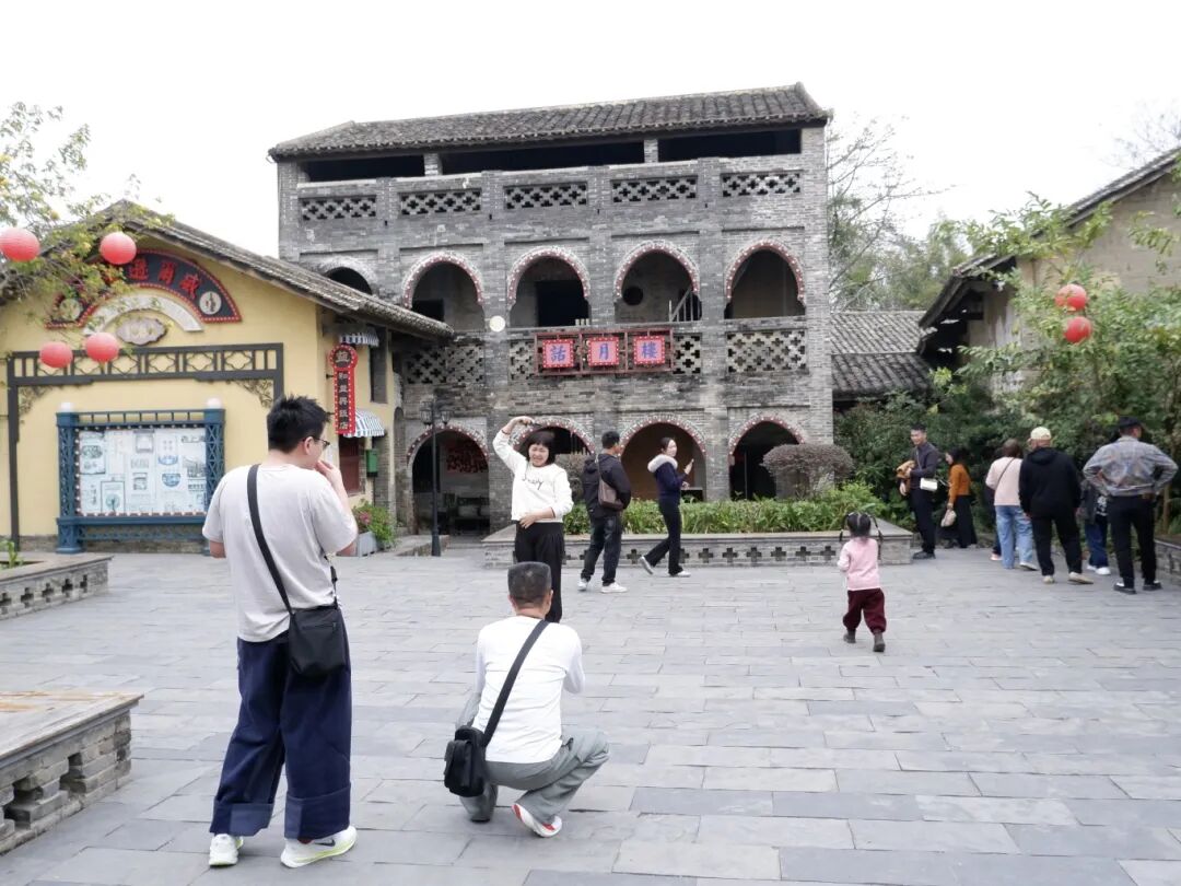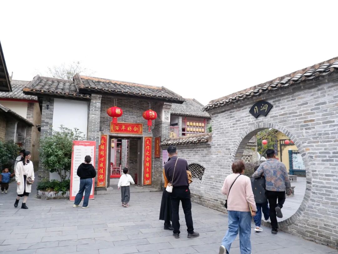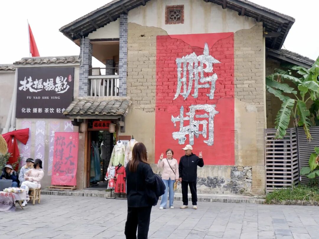 同時,景區(qū)內(nèi)的特色服裝租賃點(diǎn)人氣高漲。許多游客換上精美服飾,在古村的青磚黛瓦、喜慶布景前拍照留念,古風(fēng)與古韻相融,定格下新春里的美好瞬間,為百年古村增添了一抹靈動靚麗的色彩。