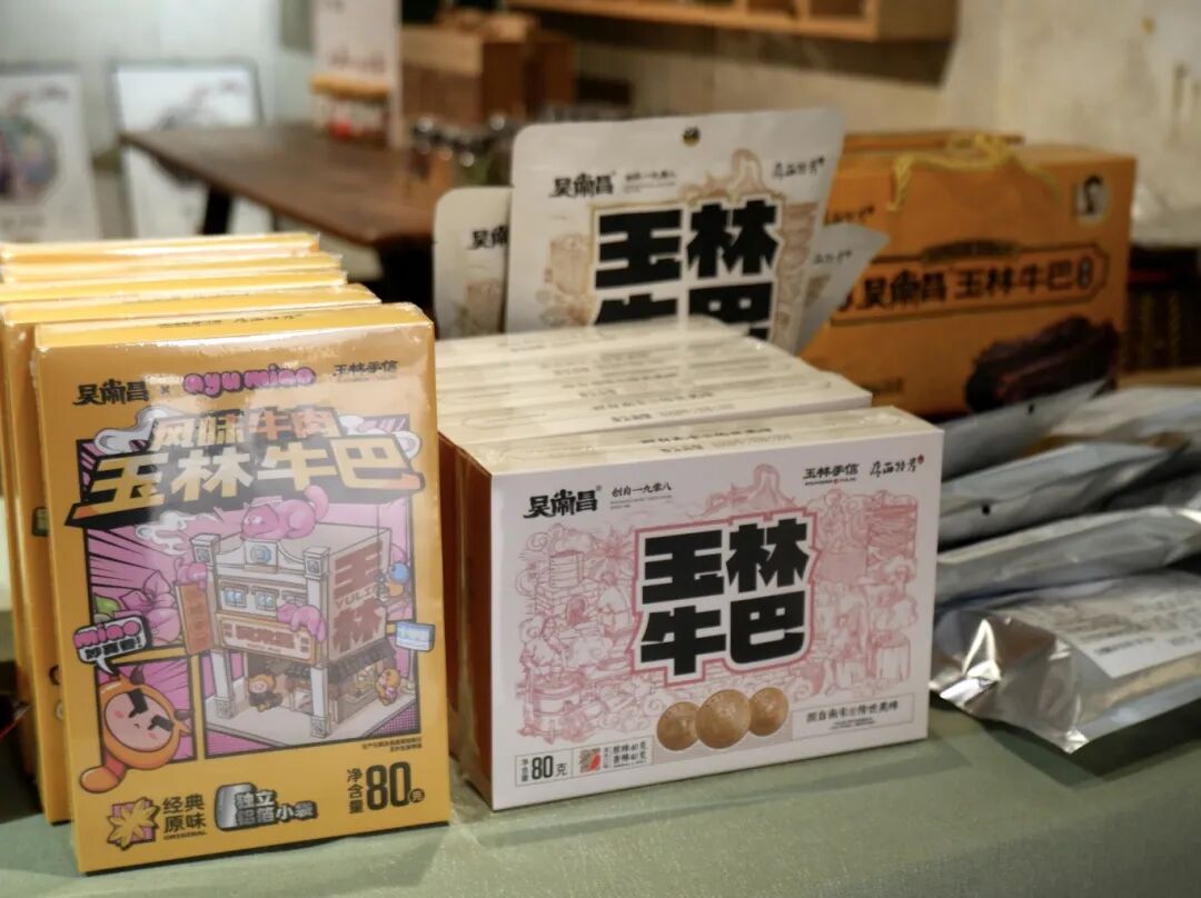 除了豐富的體驗(yàn)活動,景區(qū)內(nèi)還集中展示了多款玉林特色文創(chuàng)產(chǎn)品,設(shè)計新穎、獨(dú)具地方韻味,成為游客喜愛的伴手禮。玉林牛巴等本地特產(chǎn)更是香氣誘人,不少游客駐足挑選,把地道的玉林風(fēng)味帶回家。